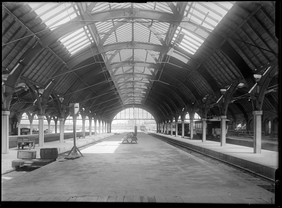 Titel: Banhallar vid Malmö centralstation i slutfasen av uppbyggnaden.