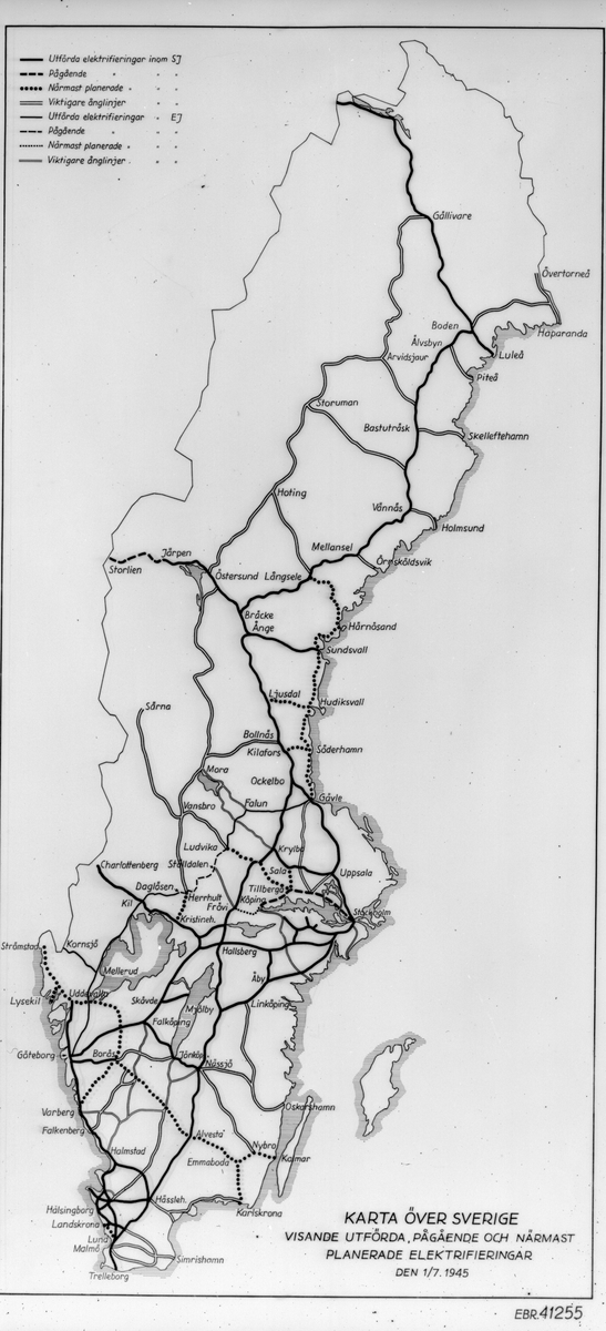 Bild visande utförda, pågående och planerade elektrifieringar av
