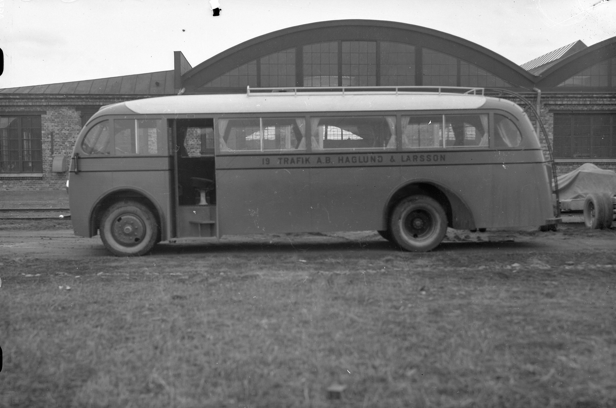 Volvo B1-buss för Haglund & Larsson. Karossen tillverkad av Aktiebolaget Svenska Järnvägsverkstäderna, ASJ.