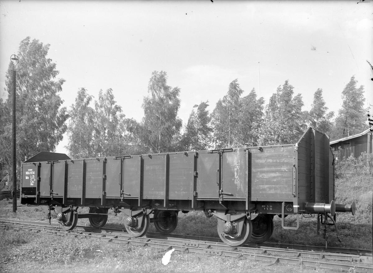 Nora Bergslags Järnväg, NBJ Mu 974. Treaxlig vagn för transport av i första hand järnskrot.