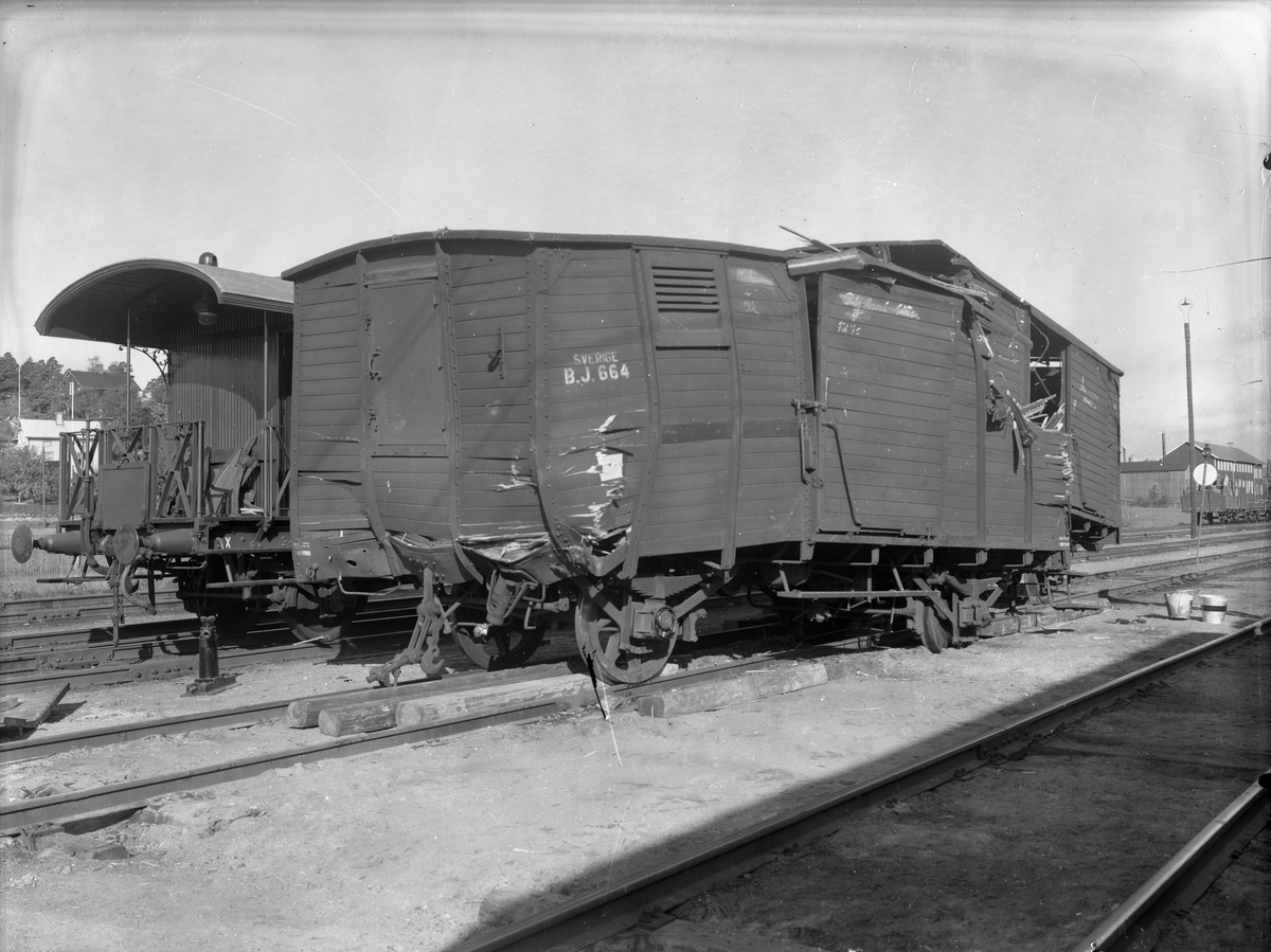 Bergslagernas Järnvägar, BJ Gsh 664. Skadade vagnar efter sammanstötning