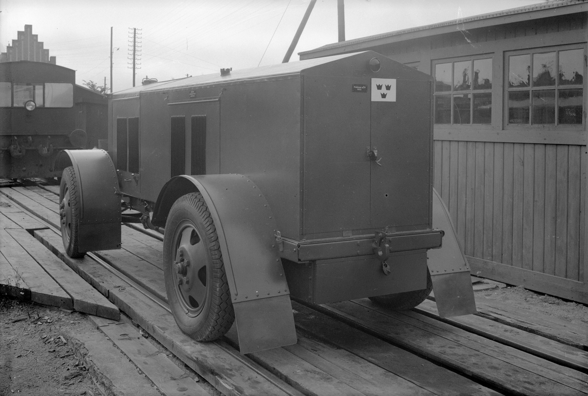 Titel: Maskinvagn m/34. Snett bakifrån utan kapell