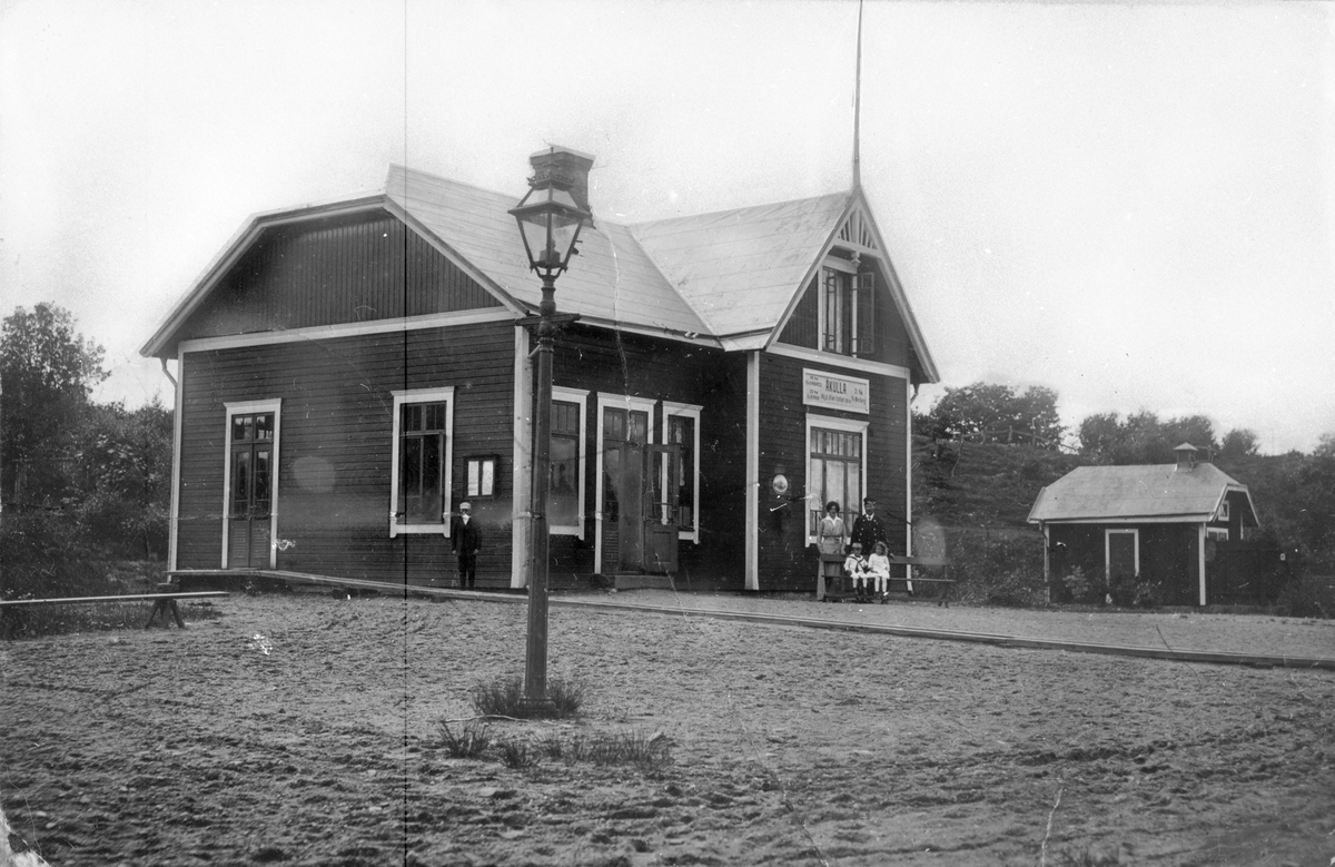 Håll- och lastplats anlagd 1911. Envånings stationshus i trä, byggt i vinkel.