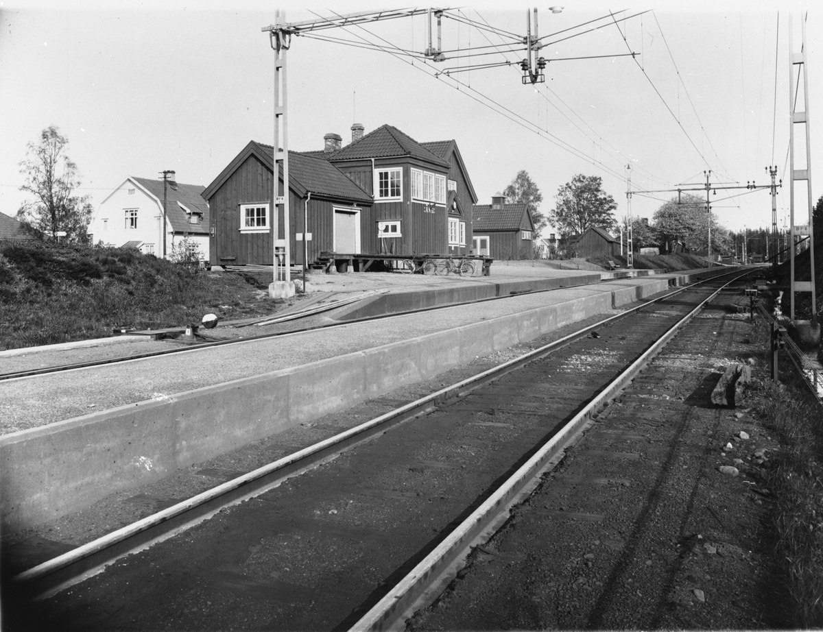 Titel: Station anlagd 1918. Envånings stationshus och ställverk i trä. Mekanisk växelförregling.