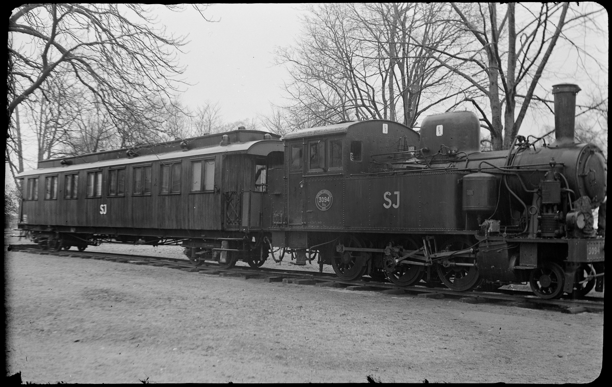 Ånglok Statens Järnvägar, SJ S5p 3094 och personvagn SJ Bop 792.