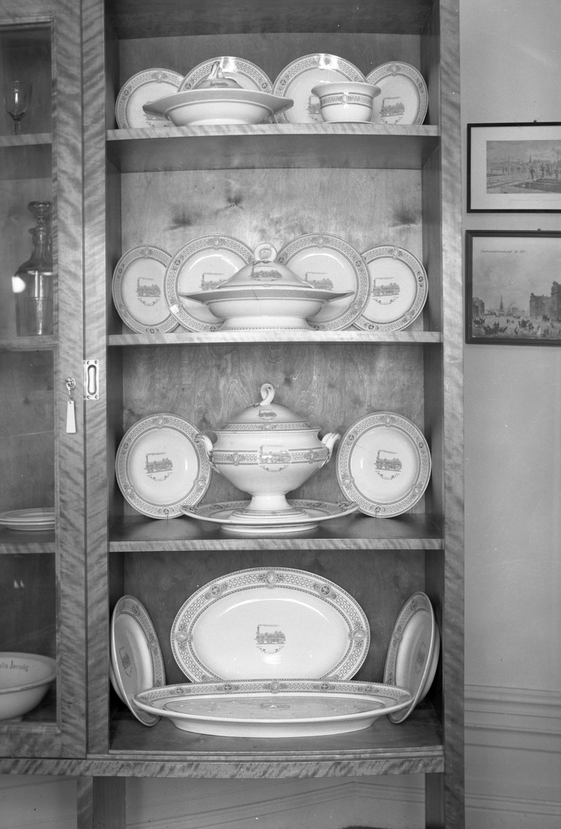 Servis från Frövi; Järnvägsmuseet. Beställd hos Gustafsbergs Porslinsfabrik i början av 1870 av första innehavarinnan av Frövi Järnvägsrestaurant. Gåva av Fru Elgstrand 1934