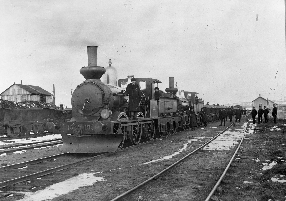 Statens Järnvägar, SJ Ga 138 "Tord" med malmtåg. Stins Abrahamsson med flaggkäpp
