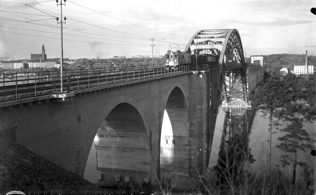 Eltåg på Årstabron, ritad av arkitekten Cyrillus Johansson, byggd 1924-1929.