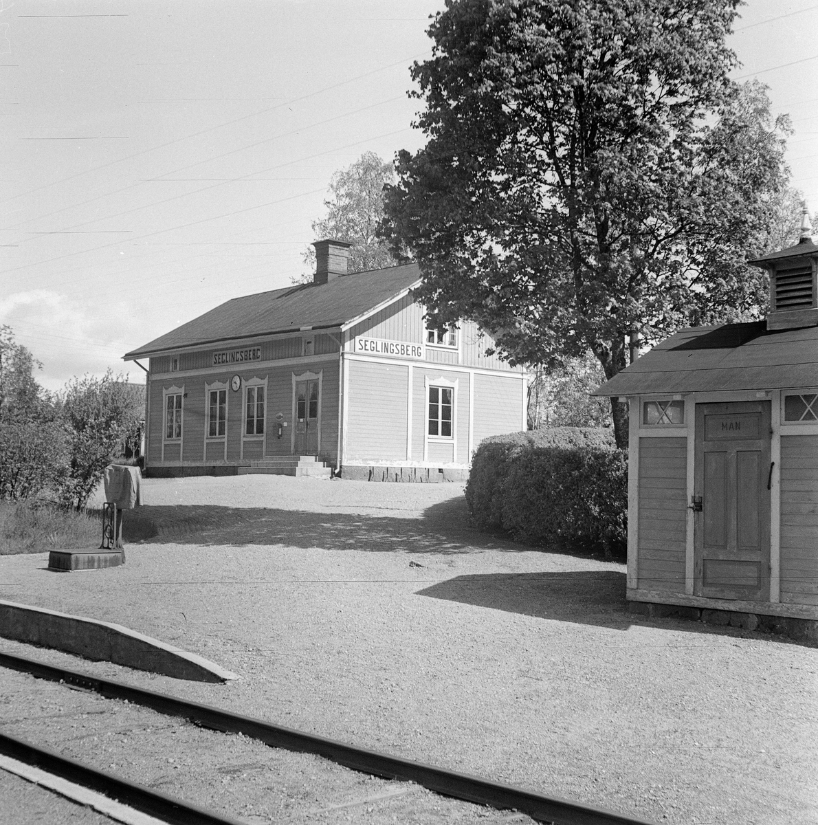 Titel: Seglingsberg station. Trafikplats anlagd 1876. Järnvägen elektrifierades 1956.