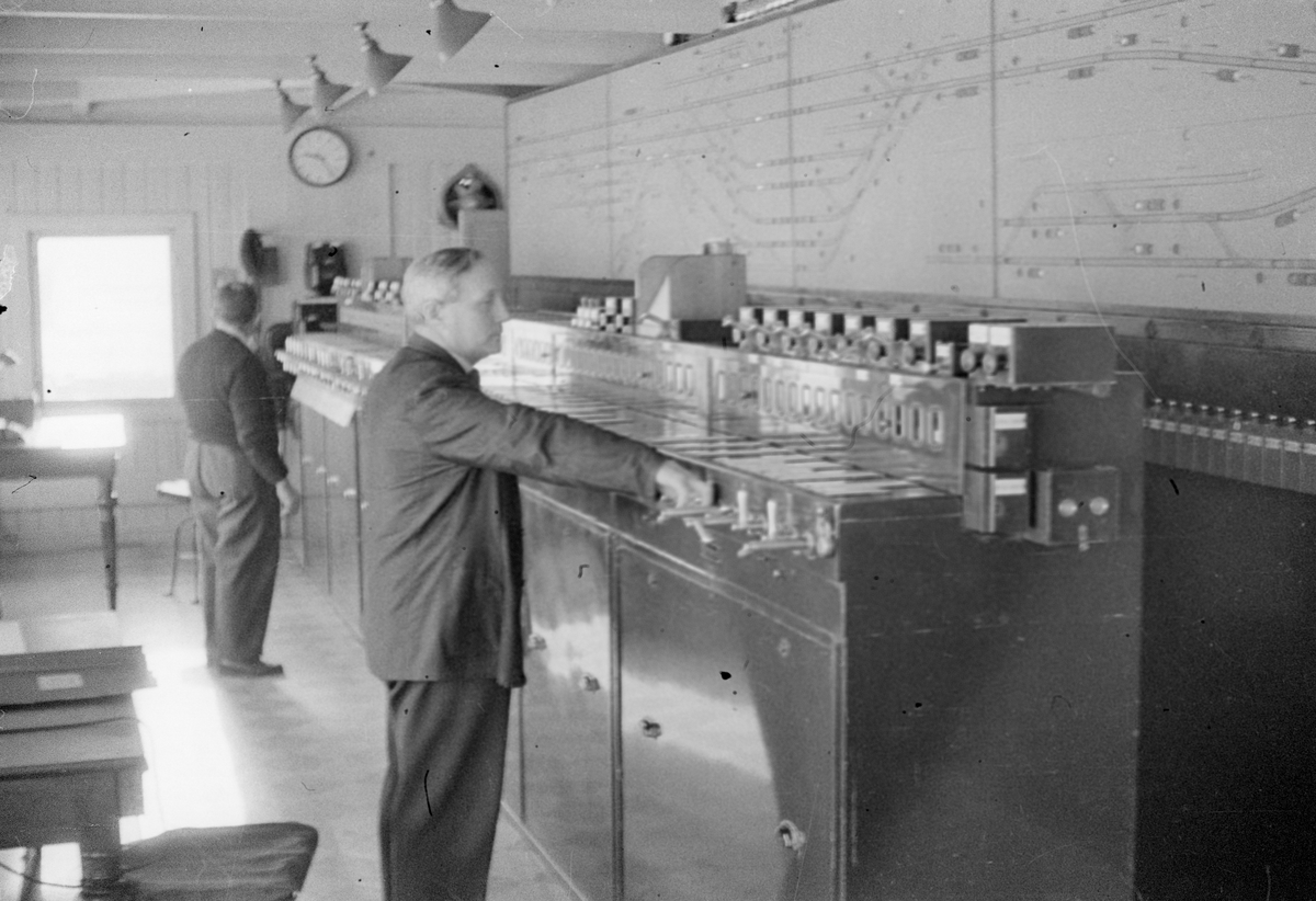 Ställverksvakter vid signaltällverket i Uppsala. Elektrisk ställverk.
