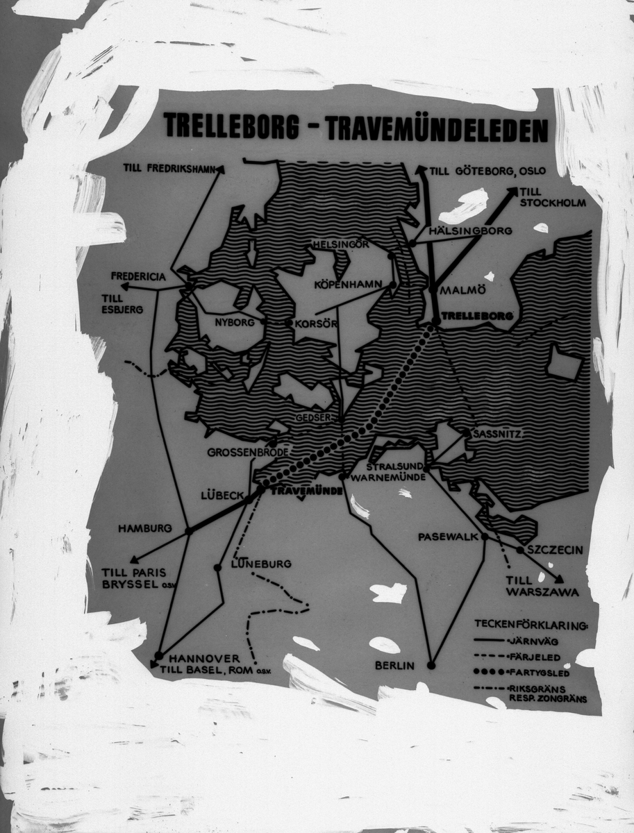 Titel: Karta över färjelinjen Trelleberg - Travemünde.