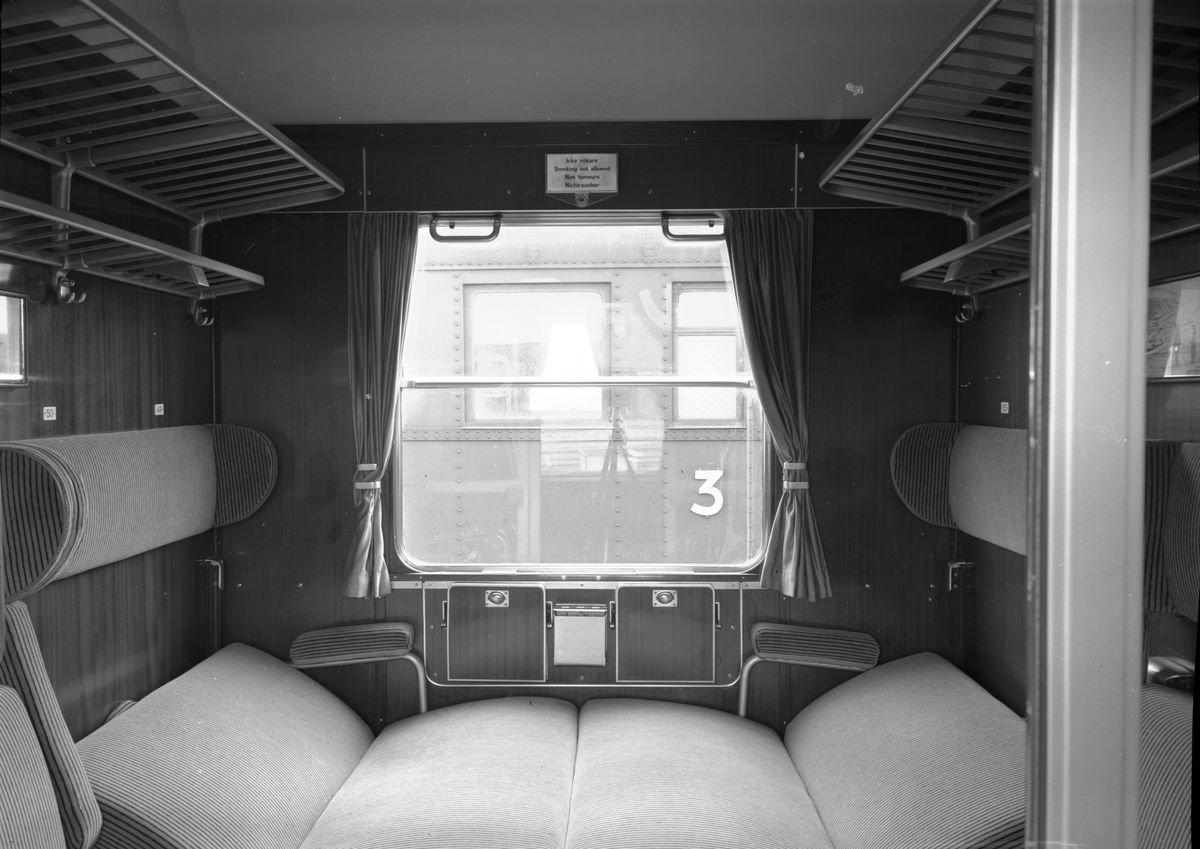 Statens Järnvägar, SJ BC 02 4585. Sittkupé med utdragna sittsoffor ger två liggplatser