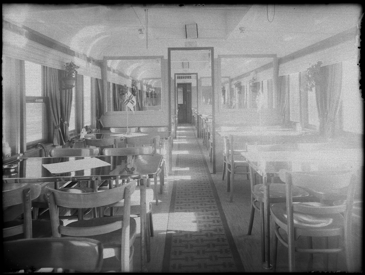 Statens Järnvägar, SJ tåghem. Matsalen, interiör från någon av vagnarna SJ Co7 1273 eller 1275.