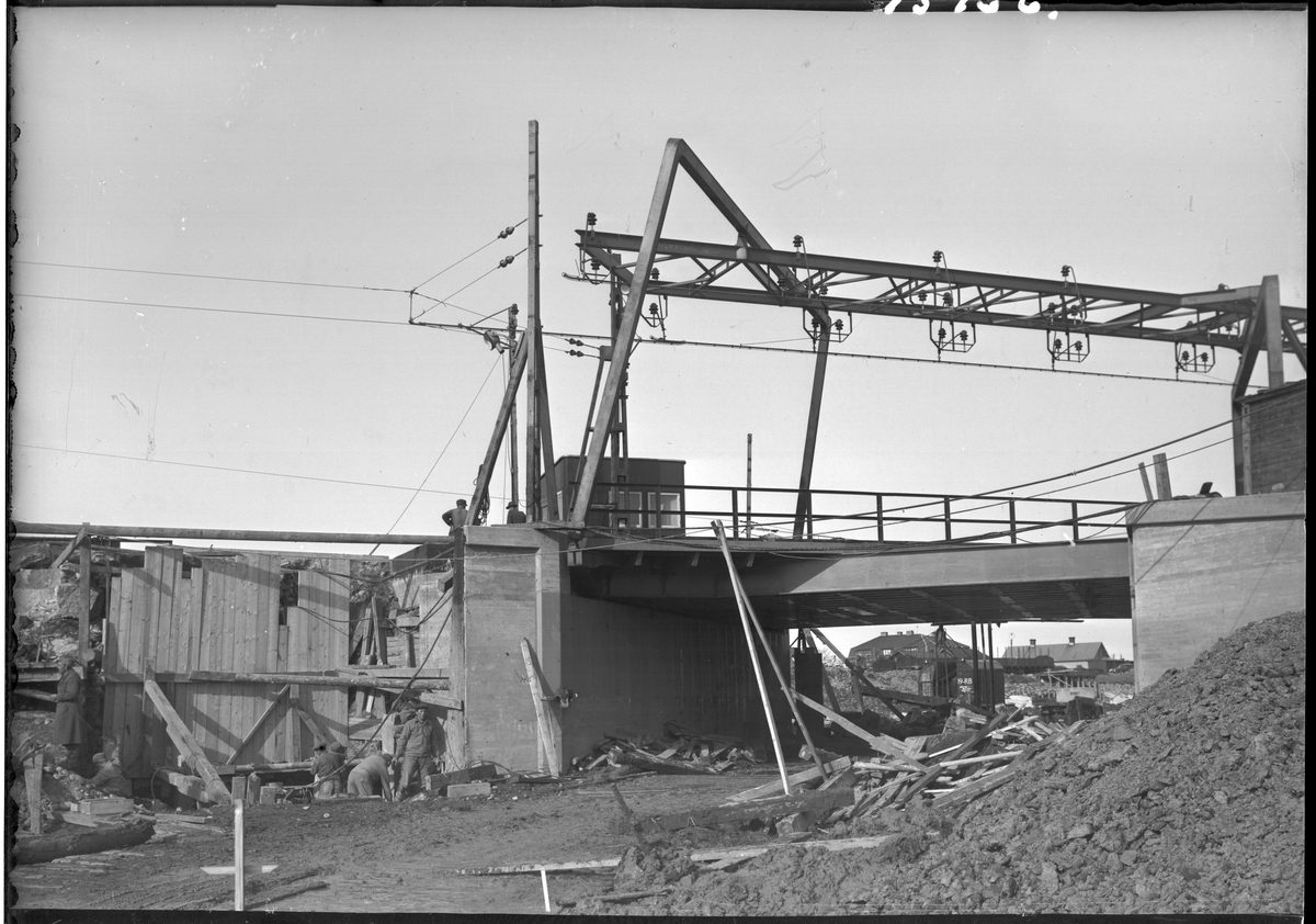 Dubbelspårsarbete. Gårdsjö till Skövde. Bro över Göta kanal vid Töreboda. Grundläggning för stödmur samt kanalomläggning.