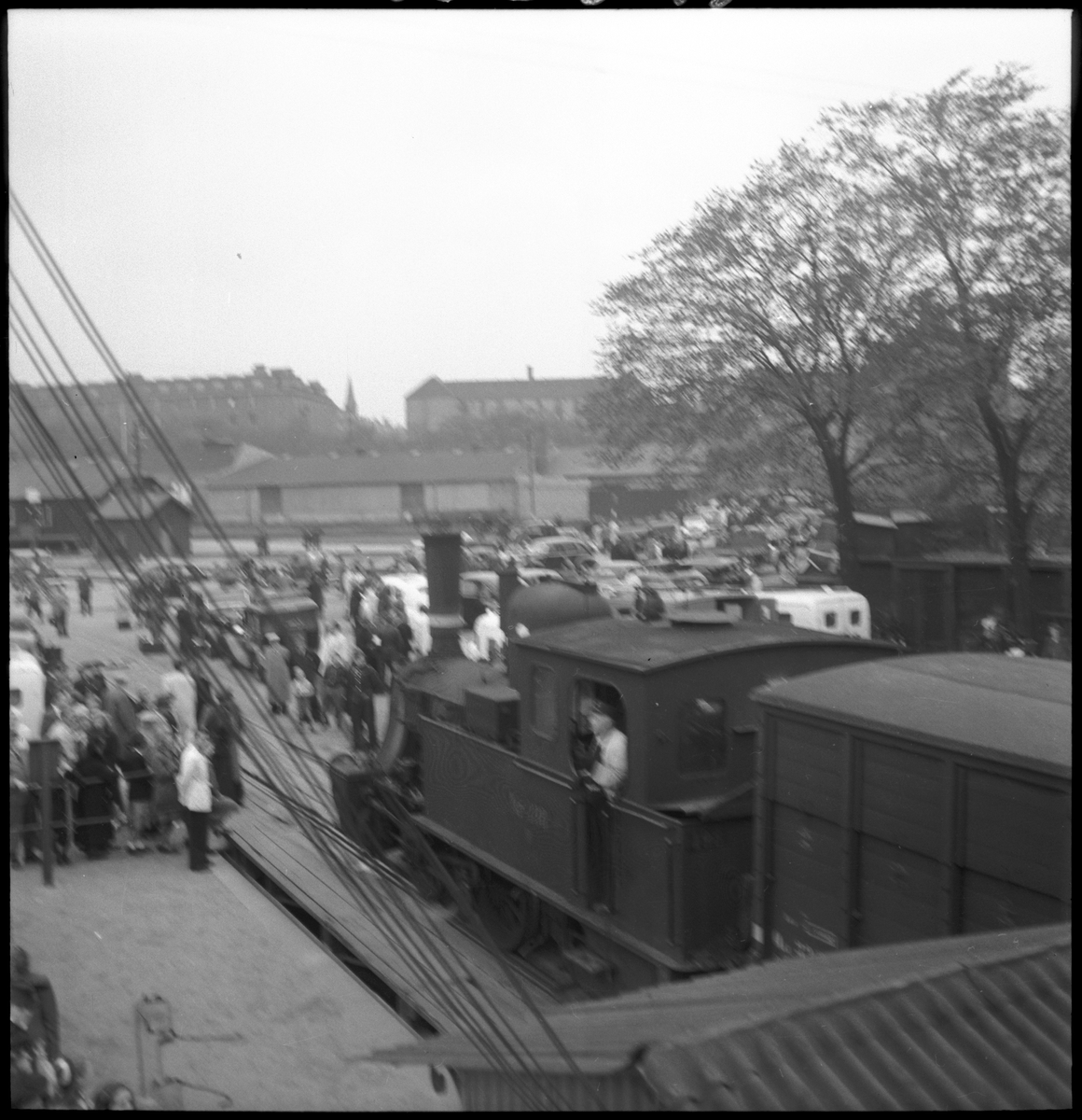 Titel: Hemtransport av danska flyktingar. Vid ankomsten till Köpenhamns frihamn.