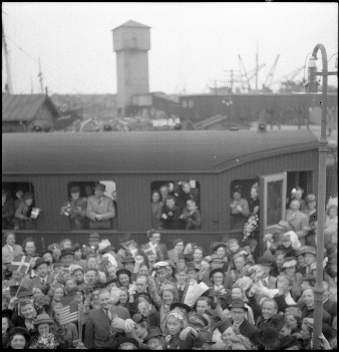 Titel: Anhöriga i väntan på ankomsten av de hemvändande flyktingarna. Köpenhamns frihamn.