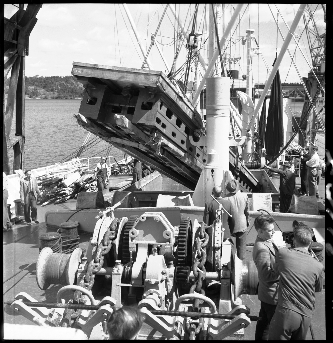 Titel: Specialtransport av pappersmaskin. Lossning i Värtahamnen.