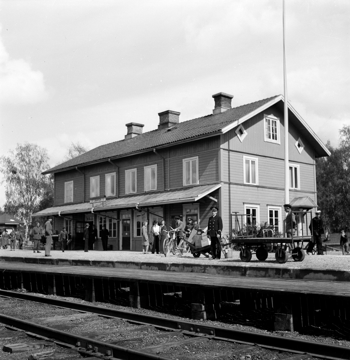 Titel: Järpen järnvägsstation. Till vänster i bild syns ett vevställverk.