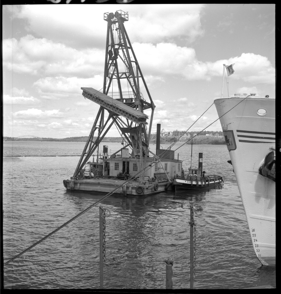 Titel: Specialtransport av pappersmaskin. Lossningsarbete i Värtahamnen. (6/7 -57 Hdn)