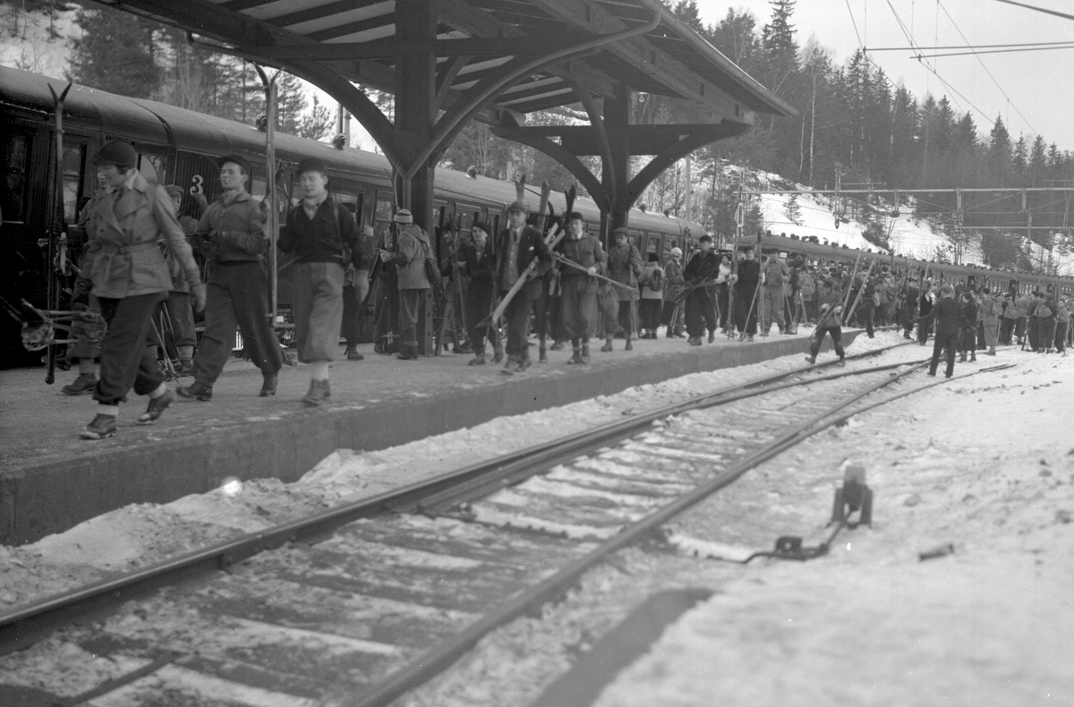 Titel: Skidresenärer. Troligtvis i Tullinge.