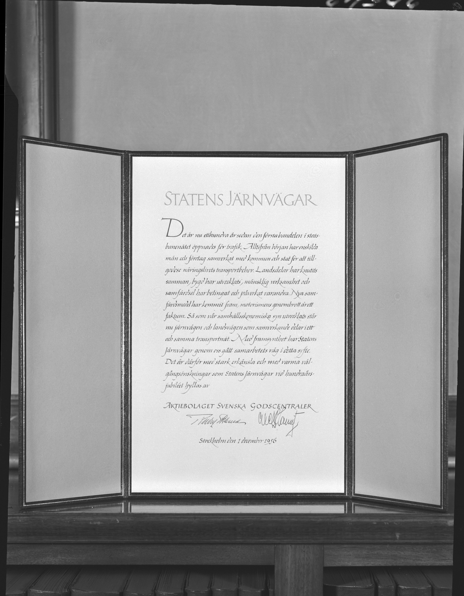 Jubileums gåva från Aktiebolaget Svenska Godscentraler.