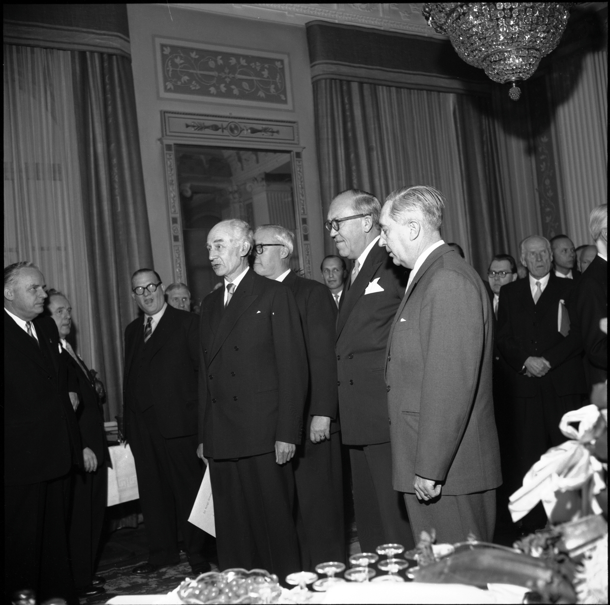 Titel: Generaldirektör Erik Upmark tar emot gåvor från Stockholms Saltsjöns järnvägar SSnJ, NOHAB, St. Kopparberg, Kockums, LME.