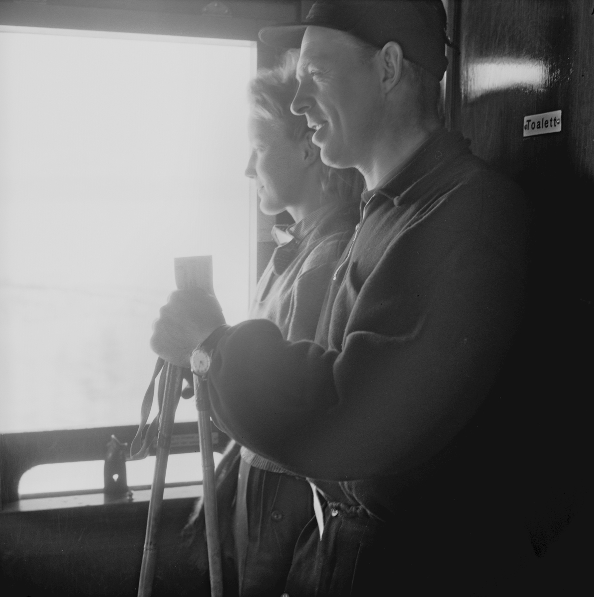 Statens Järnvägar, SJ Tåghem, resenärer i fönster.