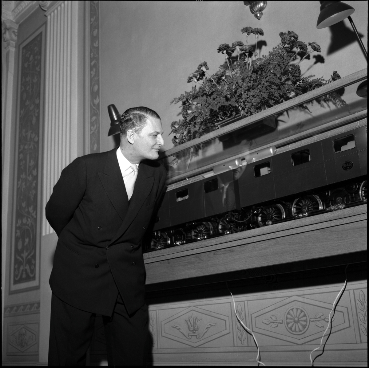 Generaldirektör Erik Upmark tar emot gåvor från Kalmar Verkstad och Motala Verkstad, AB.