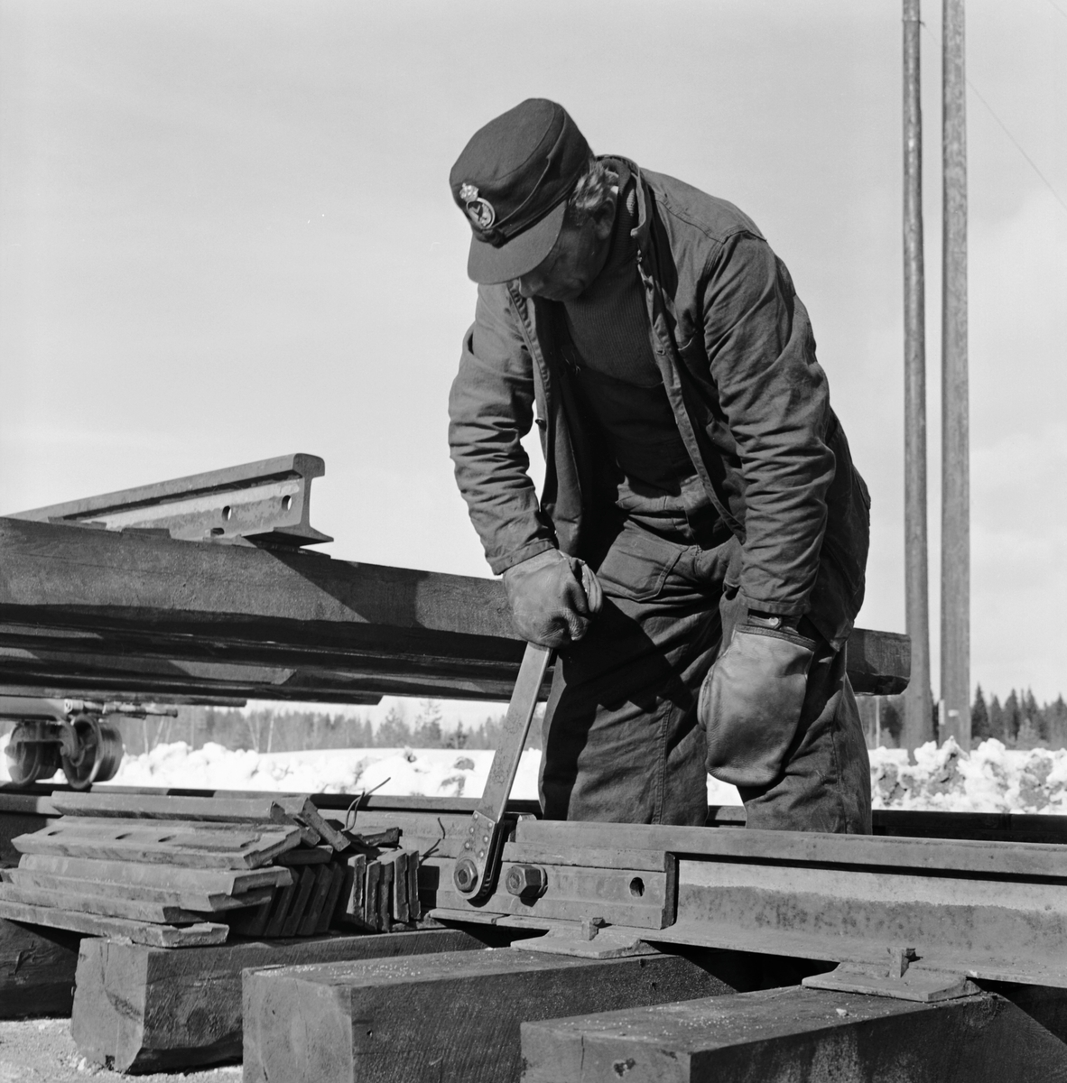 Titel: Järnvägsbygge, Morjärv - Kalix, spårarbete.