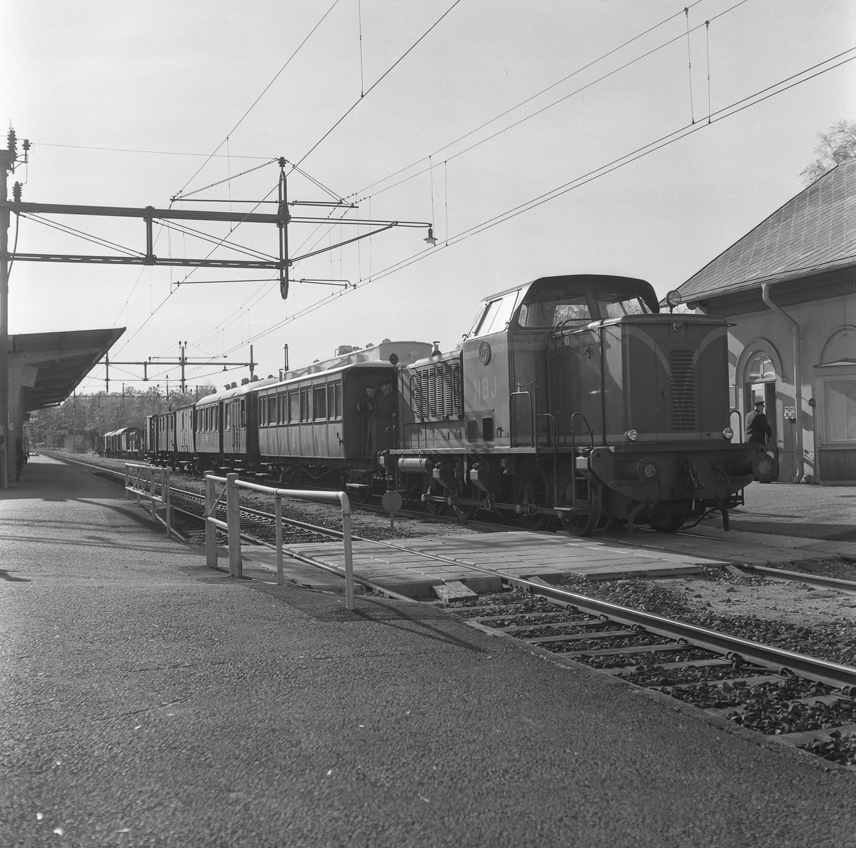 NBJ T23 med person-tåg vid Ervalla station.