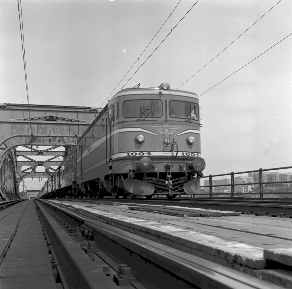 Titel: Statens Järnvägar, SJ Rb2 1004. Tåg på Årstabron