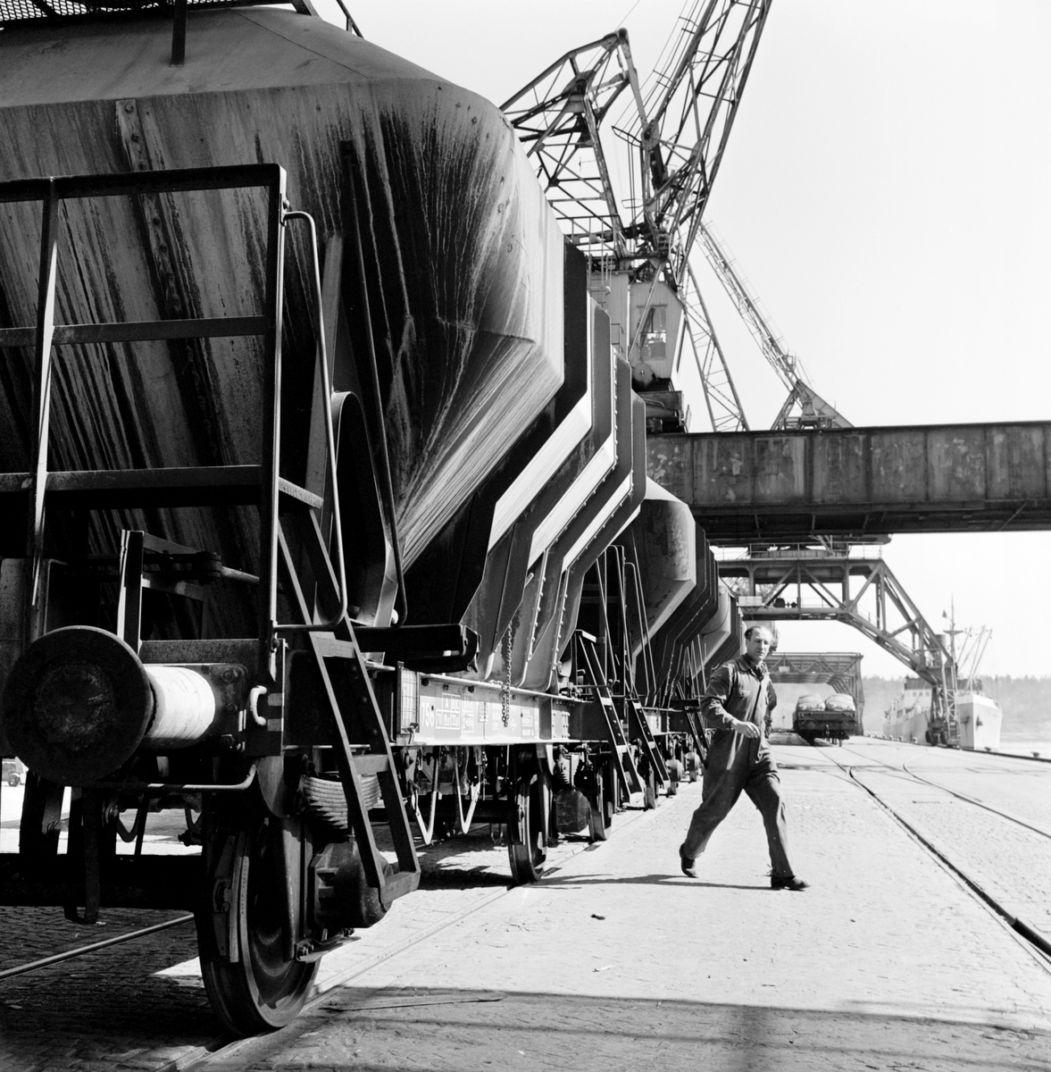 Titel: Lastning av säd, Värtan. SJ Godsvagn 100746