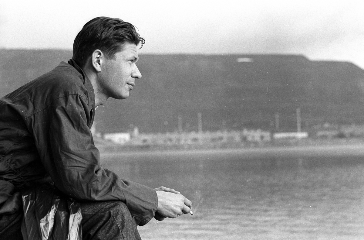 Rökpaus på en brygga vid sjö.