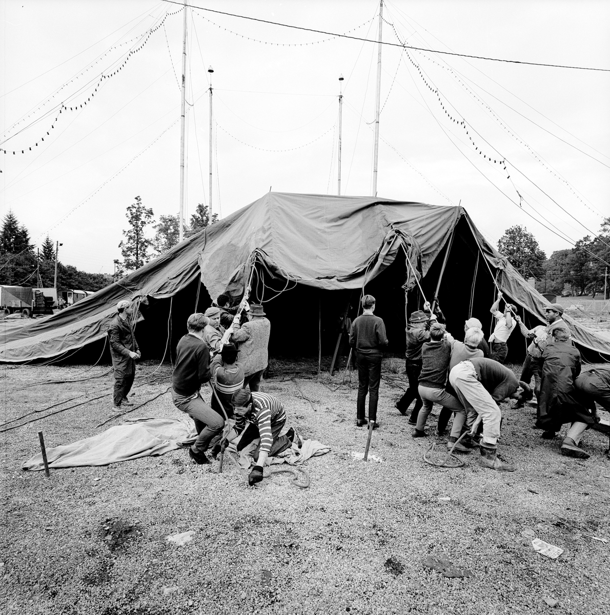 Titel: Cirkus Scott. Uppbyggnad av cirkustält