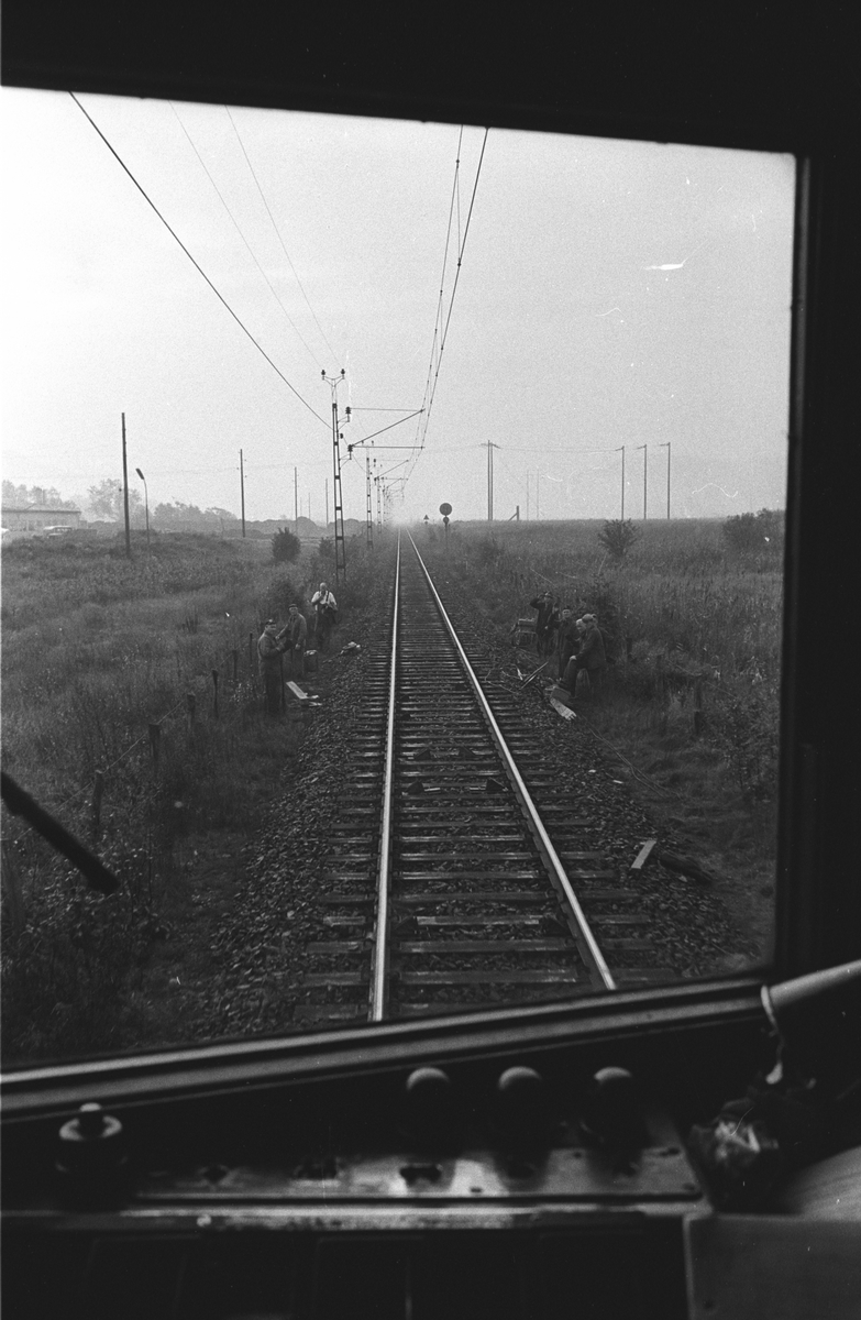 Titel: Fjärrblockering, linjen Göteborg, G - Halmstad, Hd. Fotografiet taget innifrån SJ F 632