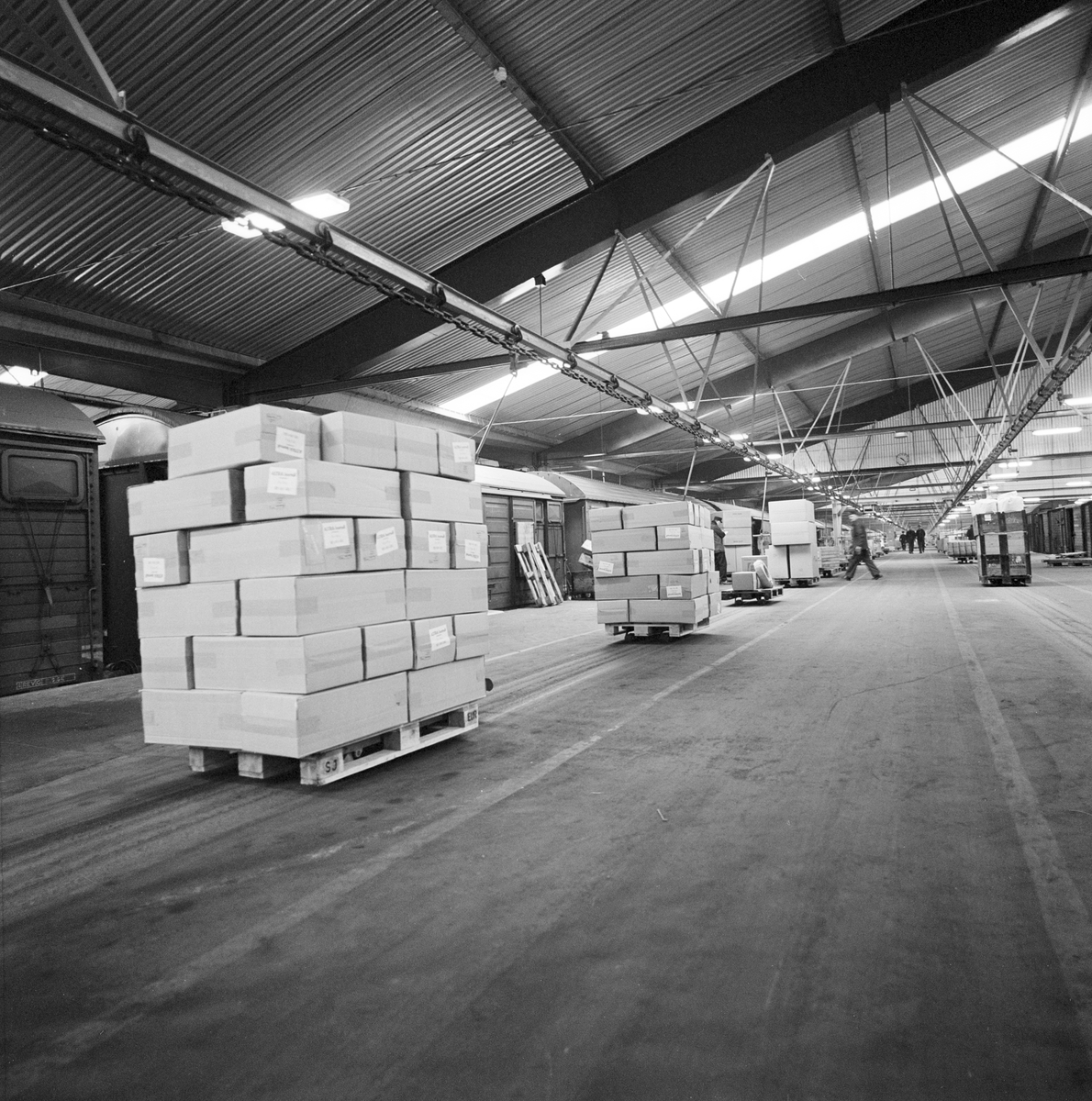 Titel: Godsterminal. Nya godsmagasinet. Travers för förflyttning av pallyftare med godspallar