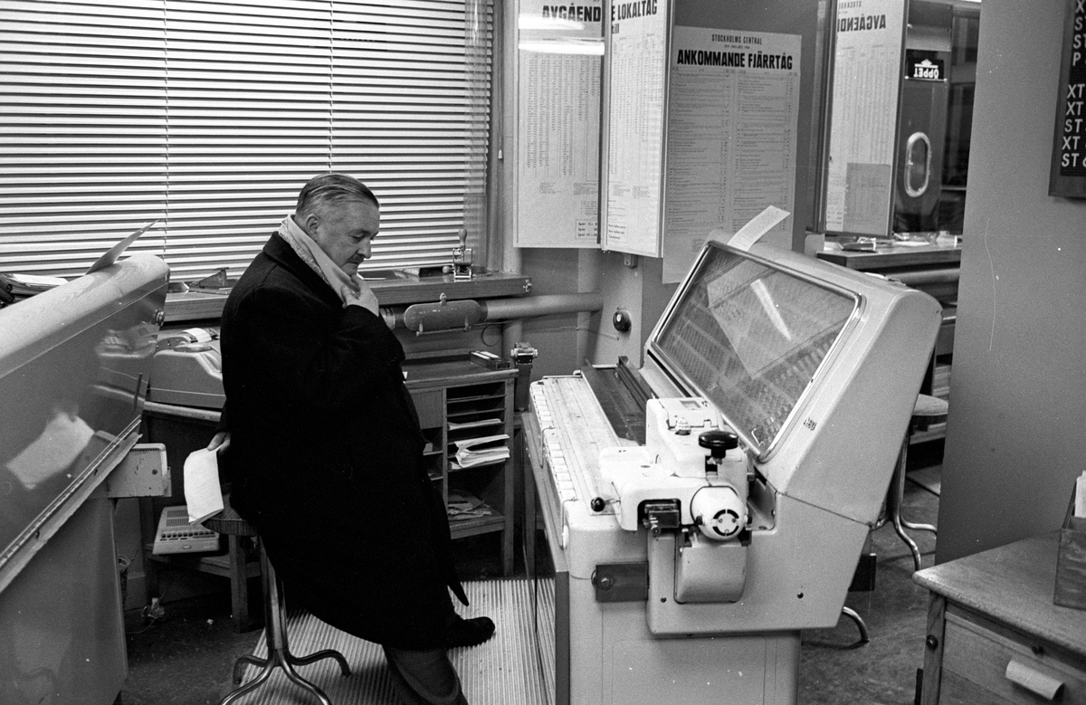 Engelska Journalisters resa till Kiruna. Biljettexpeditionen, biljettmaskin.