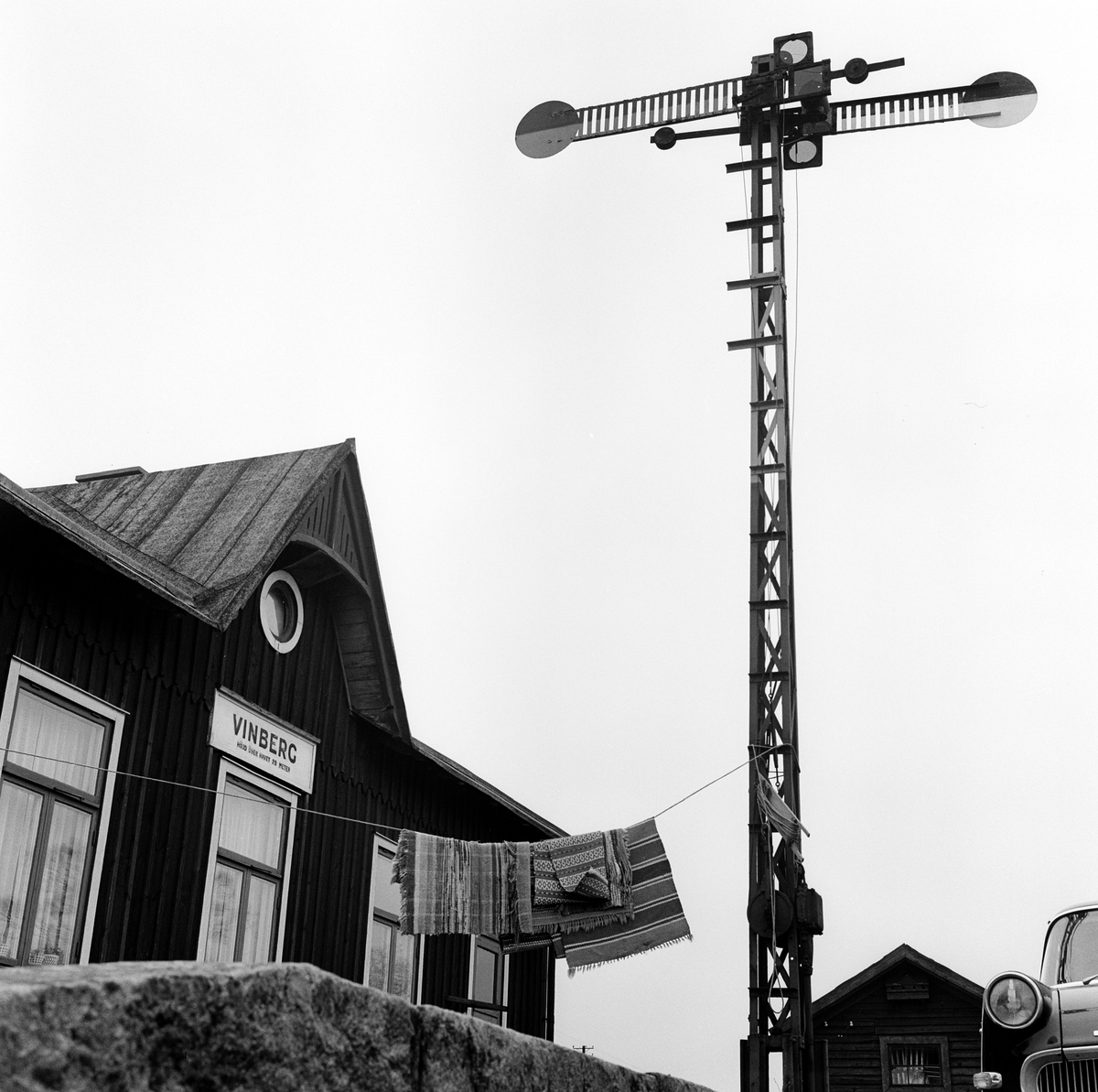 Semafor, och en tvättlina som fästs för upphängning av mattor.