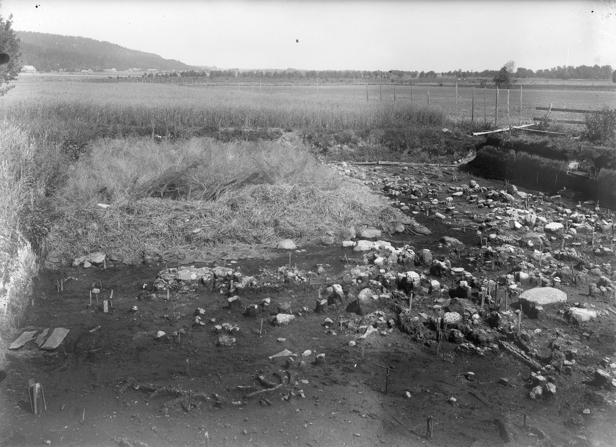 1911 års schakt från S men längre mot SV. Härdar och sittstenar.