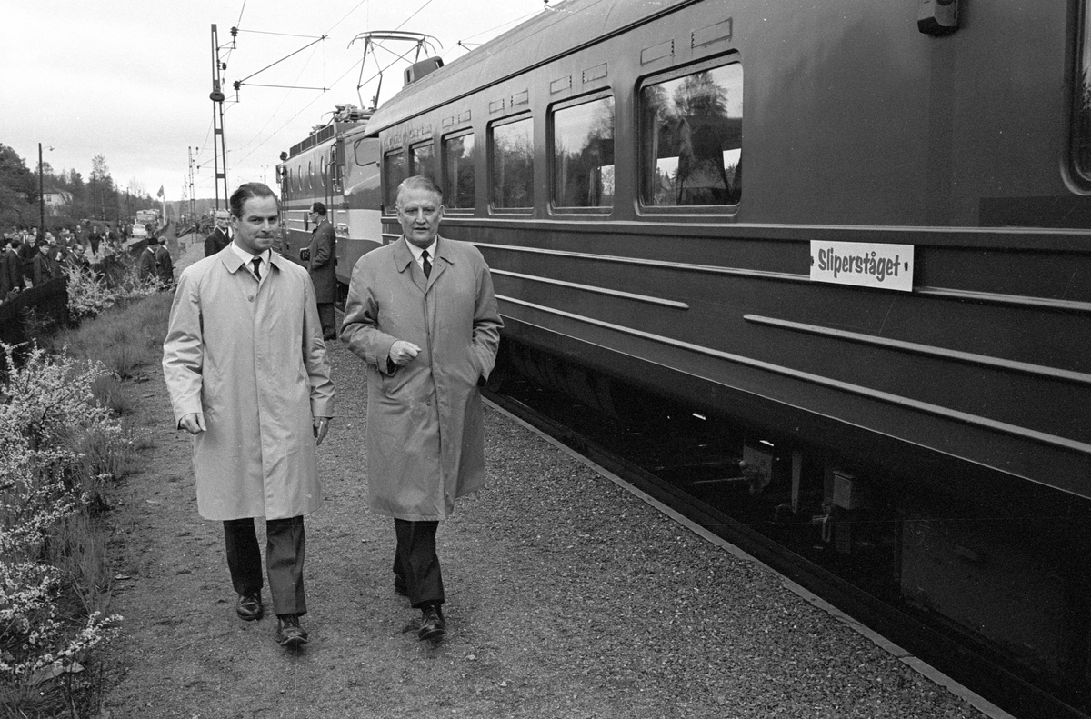 Titel: Sliperståget. Generaldirektör Upmark till höger. Den miljonte betongslipersen