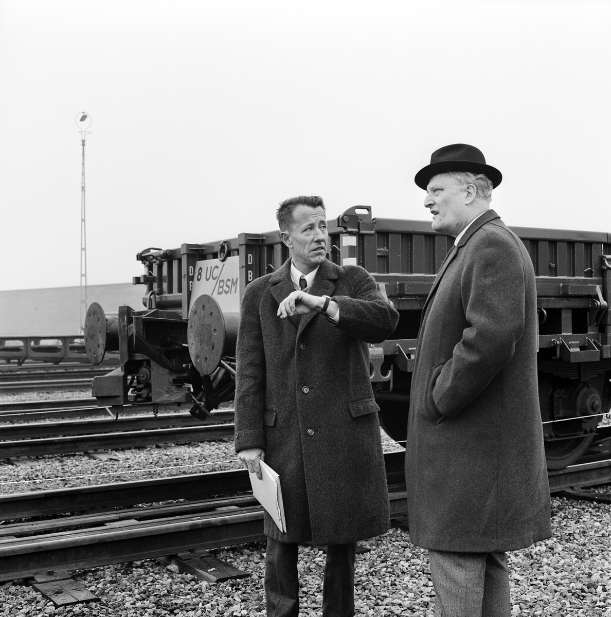 Titel: Test av automatkoppel i Gävle. Generaldirektör Upmark till höger