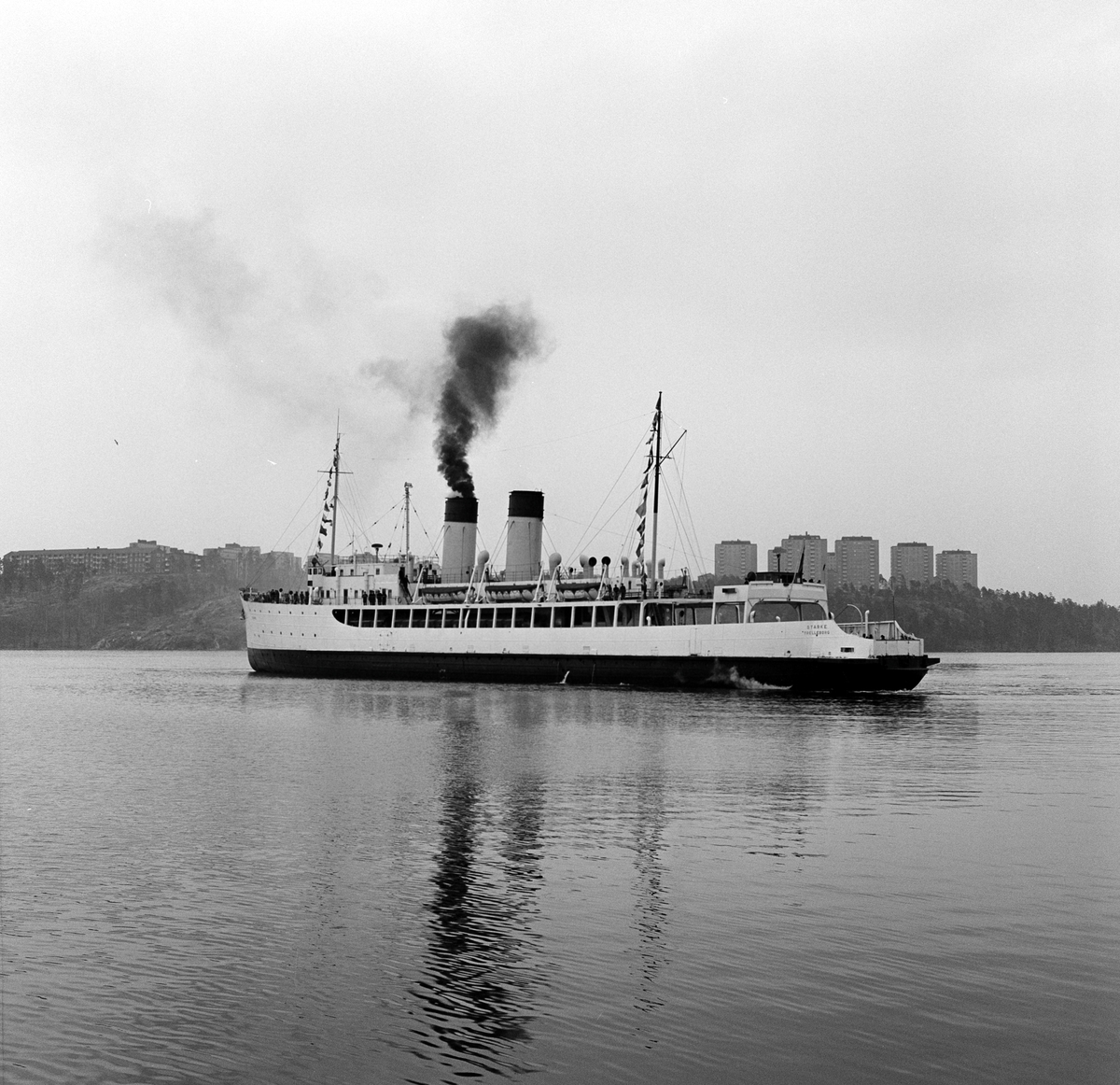 Titel: Tågfärjan Statens Järnvägar SJ "Starke" i Värta-hamnen. Tågfärjan trafikerade linjen Värtan - Nådendal.