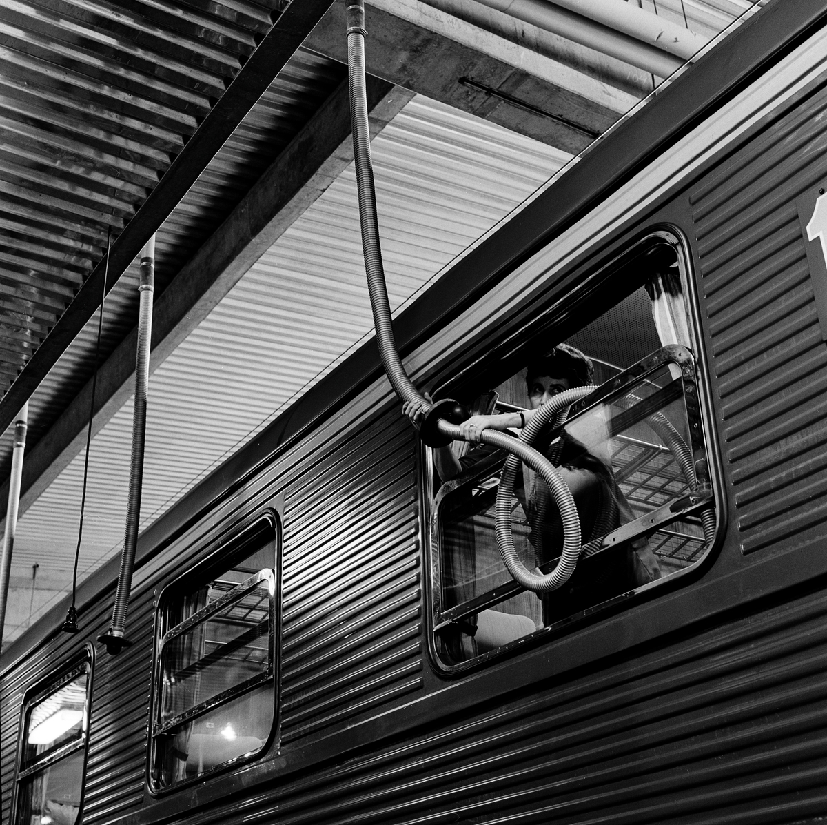Städning av vagn. Vagnhall, Hagalund
