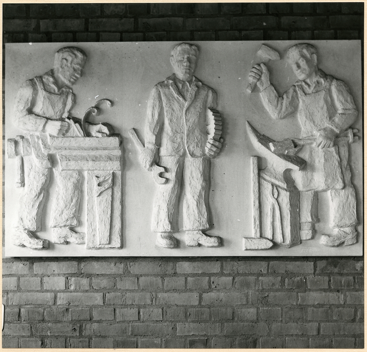 Relief utförd av arbetarna vid verkstäderna är uppsatt i matsalen i Fjällbo, öster om Sävenäs rangerbangård.