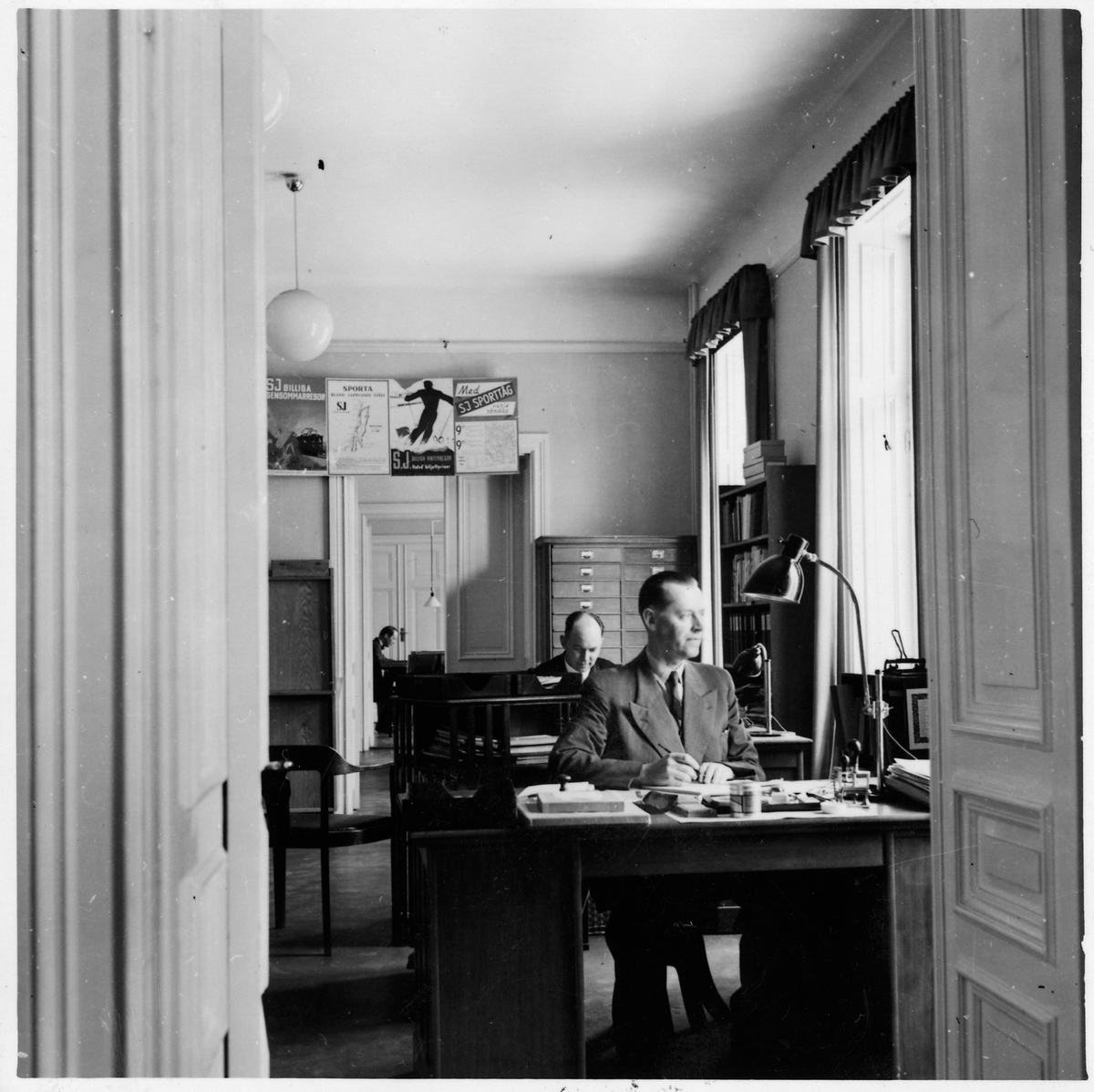 Kontorist Berglund och bakom honom sitter Bokhållare Lilievall.