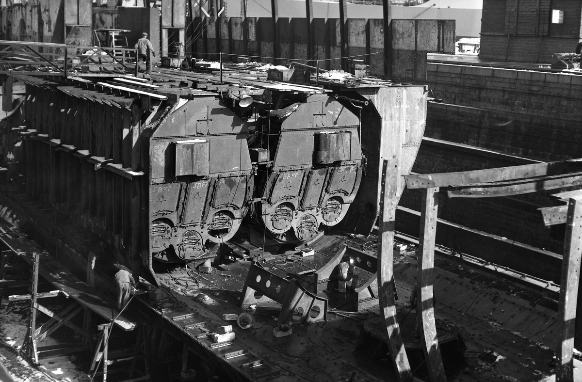 Titel: Isbrytarfärjan Starke under ombyggnad på Kockums varv. Mittpartiet 12.75 meter.
