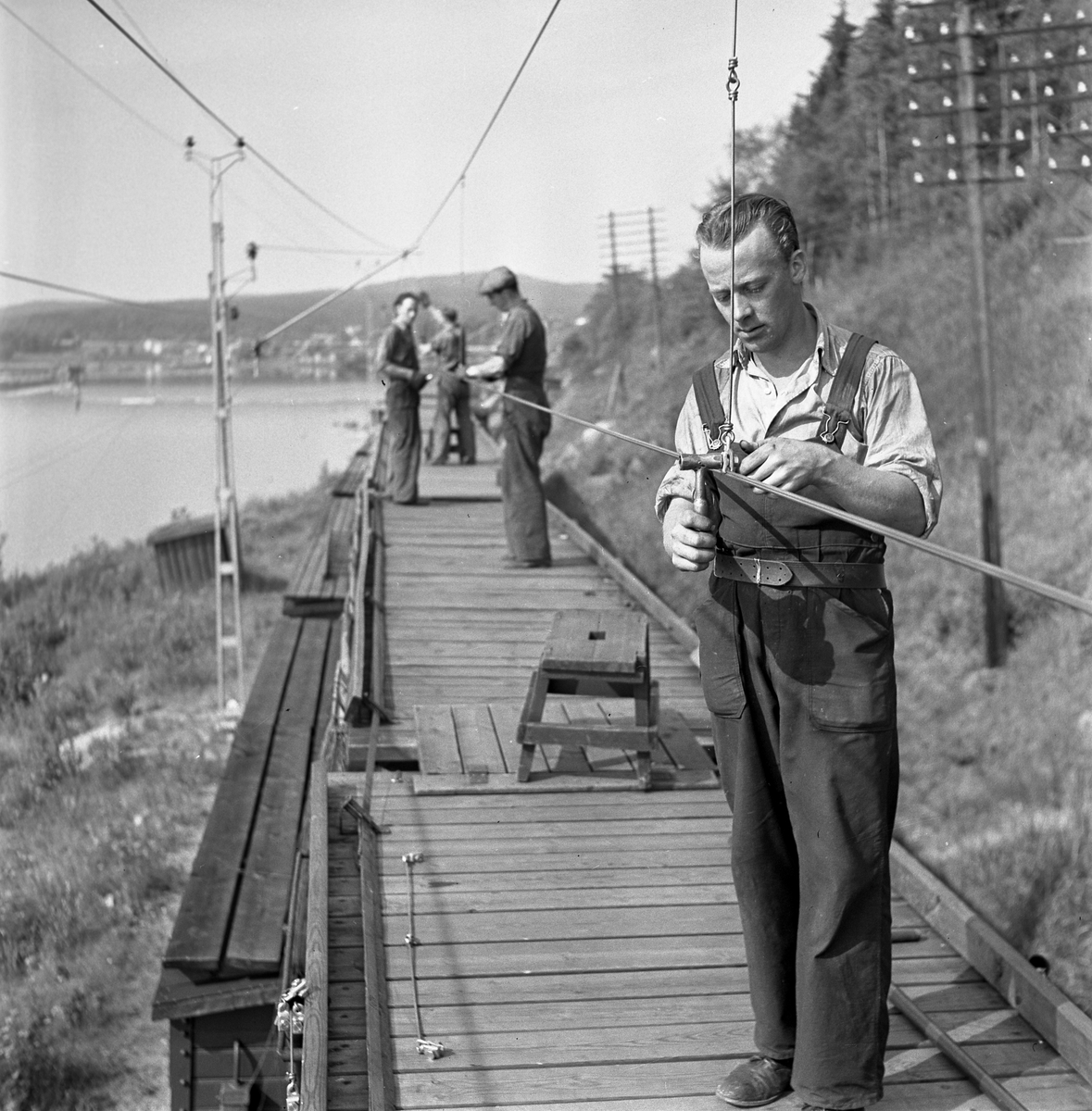 Titel: Elektrifiering av linjen Ånge-Sundsvall. Monteringsarbeten. Uppsättning av bärtrådar.