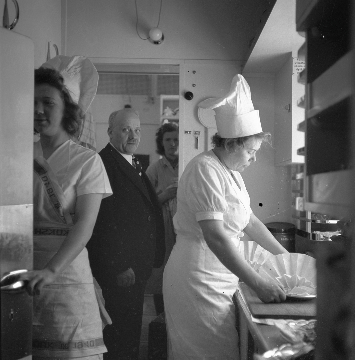 Förberedelser i restaurangvagnsköket i samband med den första resan med eldrift på sträckan Långsele-Boden.