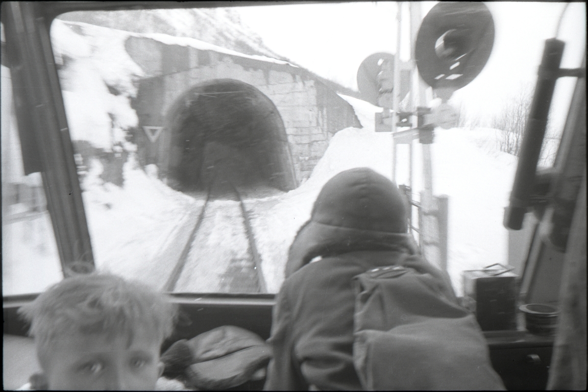 Titel: Barn tittar på utsikten från en motorvagn