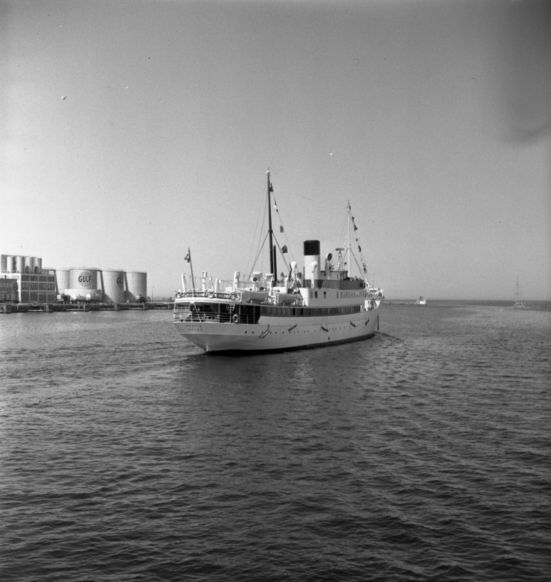 Titel: Ångfartyget S/S Örnen i Malmö hamn. Gick mellan Malmö-Köpemhamn mellan 1951-1959.